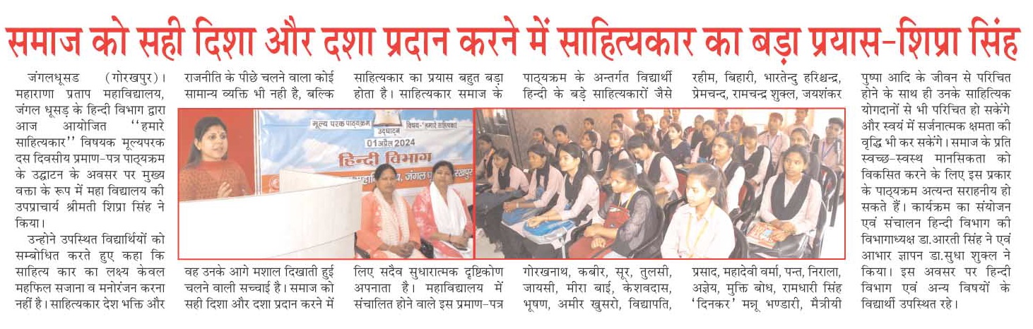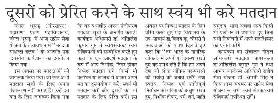 • महाराणा प्रताप महाविद्यालय, जंगल धूसड़ में आप का स्वागत है